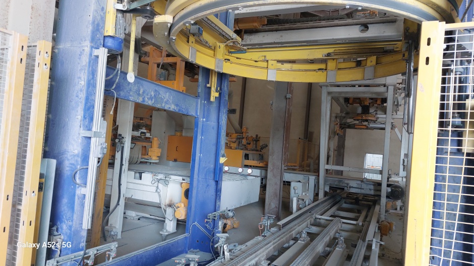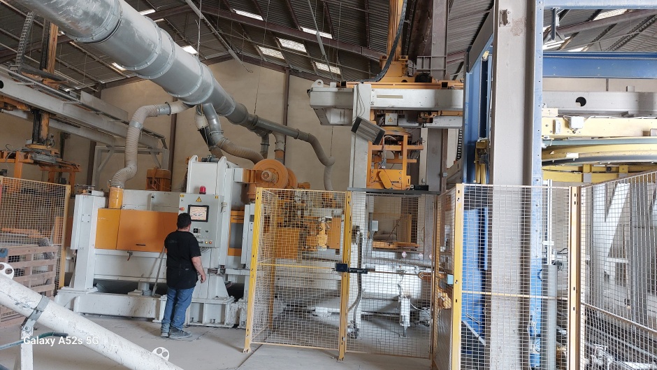 La pince n°1 dépalettise cette palette rang par rang et les dépose sue le convoyeur d'alimentation de la rectifieuse n°1