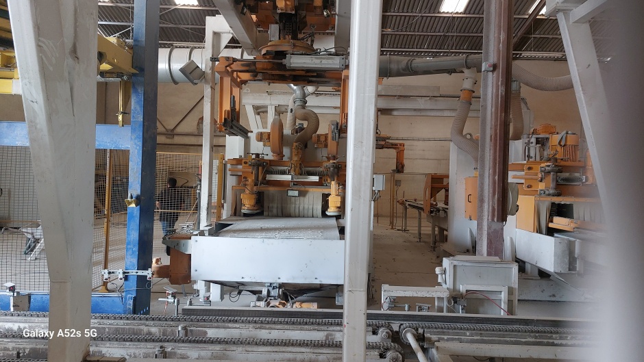 La pince n°1 dépalettise cette palette rang par rang et les dépose sue le convoyeur d'alimentation de la rectifieuse n°1